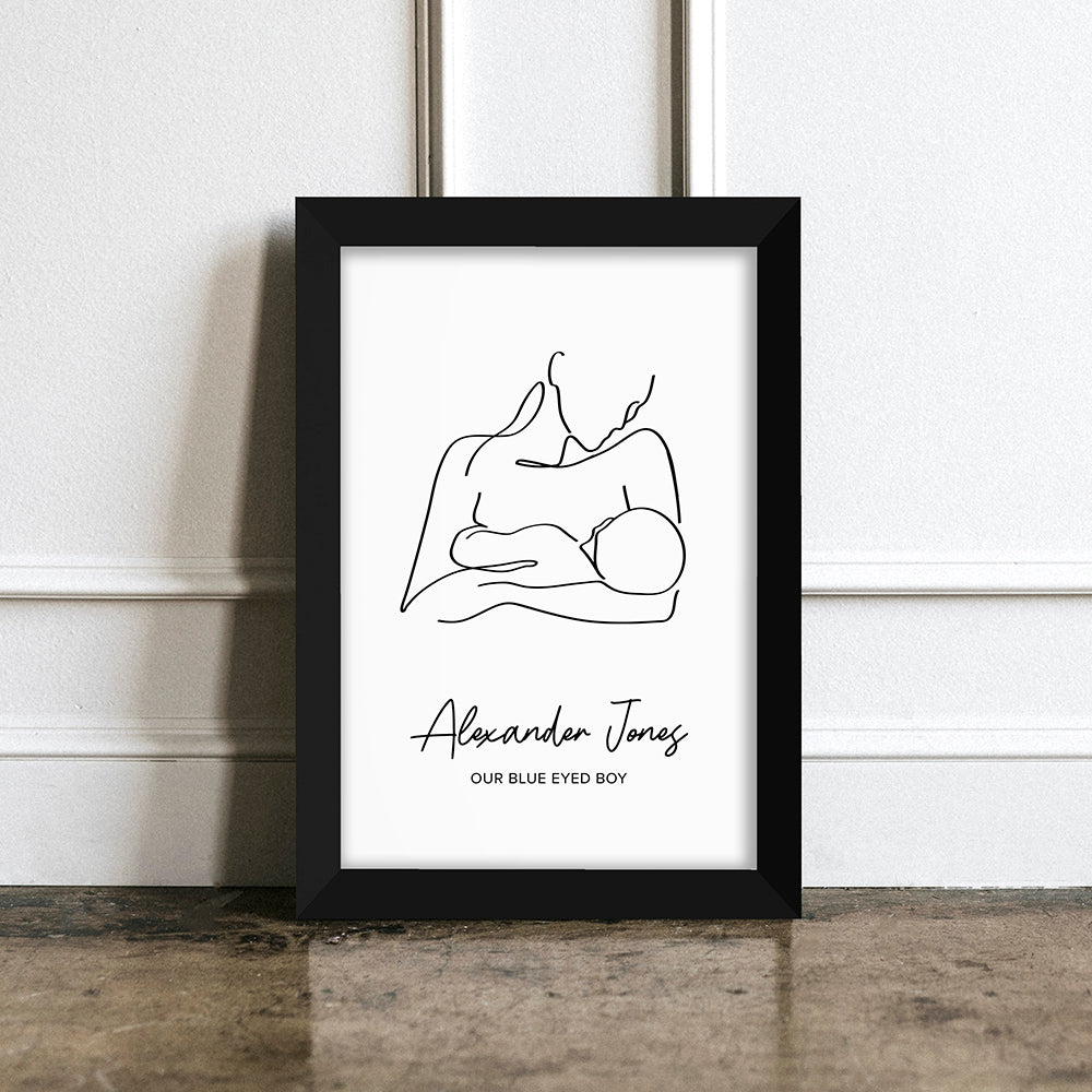 Celebrate the special bond between new mum and baby with our Personalised Line Art New Mum and Baby Feeding Print. Crafted with care and quality, this print adds a meaningful, personalized touch to any space. Perfect as a thoughtful gift or a unique keepsake to cherish every moment.