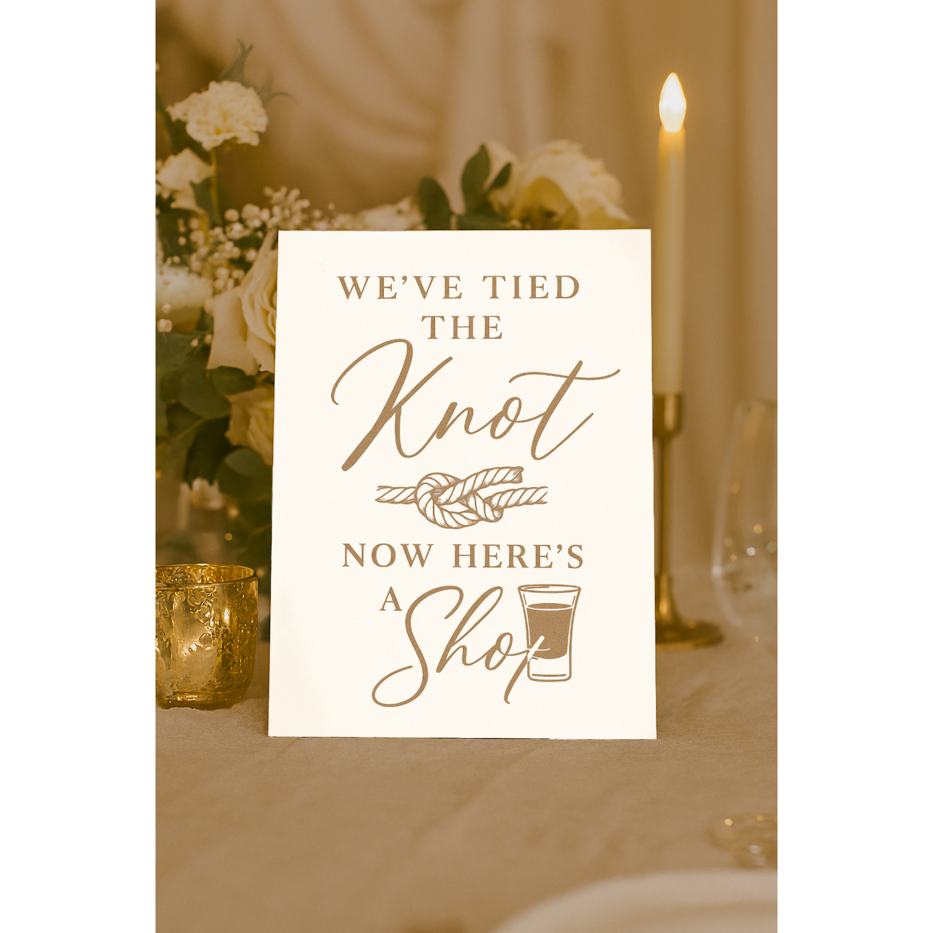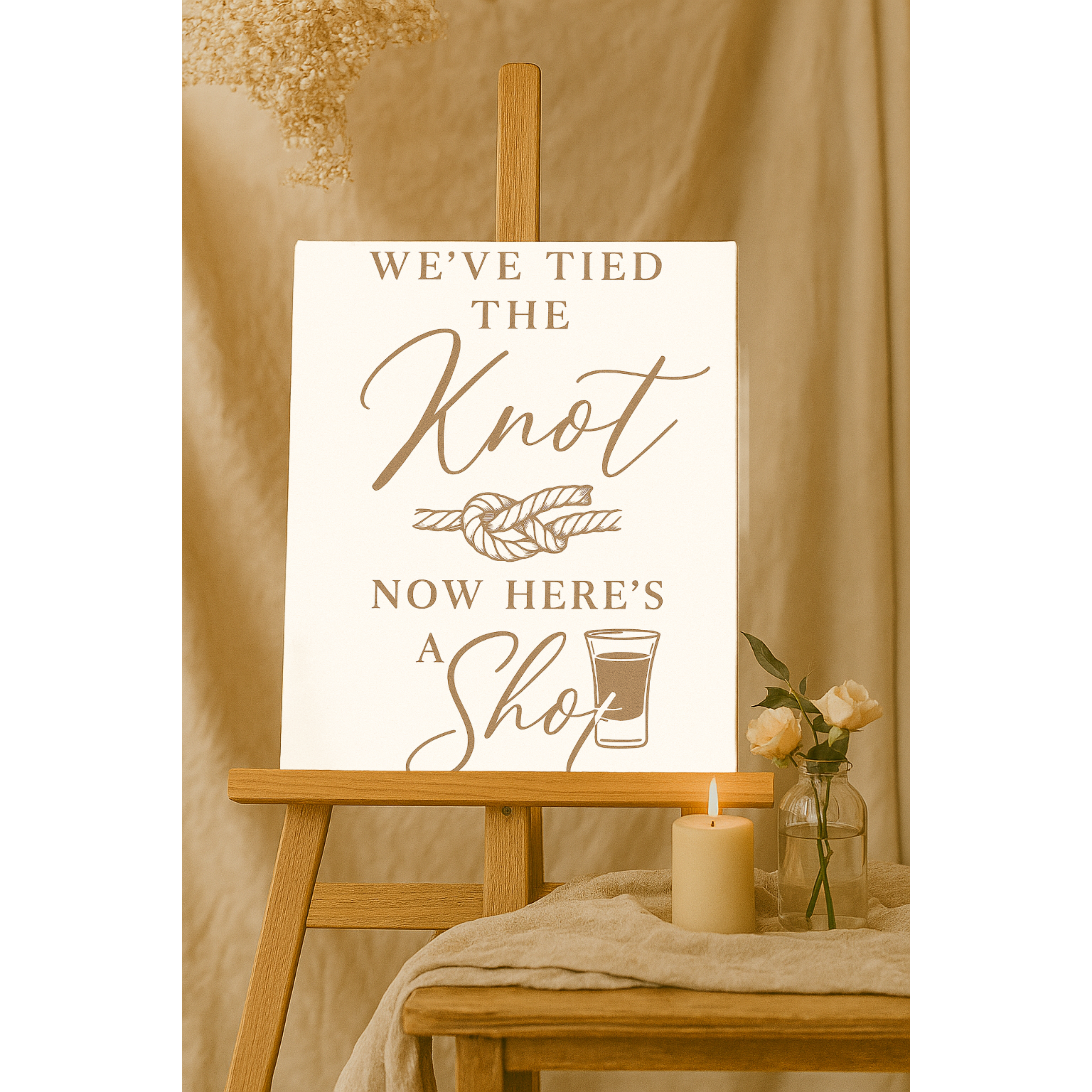 Celebrate your special day with a touch of humor and style! Our “We’ve Tied the Knot, Now Here’s a Shot” wedding sign is the perfect mix of playful charm and premium design — ideal for home décor, bridal showers, or wedding bar areas.