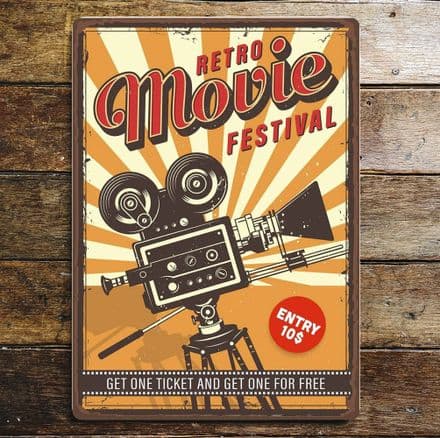 Retro Cinema Movie Festival Metal Sign Plaque