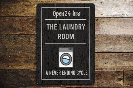 The Laundry Room - Open 24 Hours - Never Ending Cycle Metal Sign Humorous Plaque