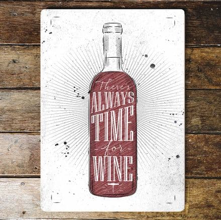 There'S Always Time For Wine - Metal Wall Sign Plaque