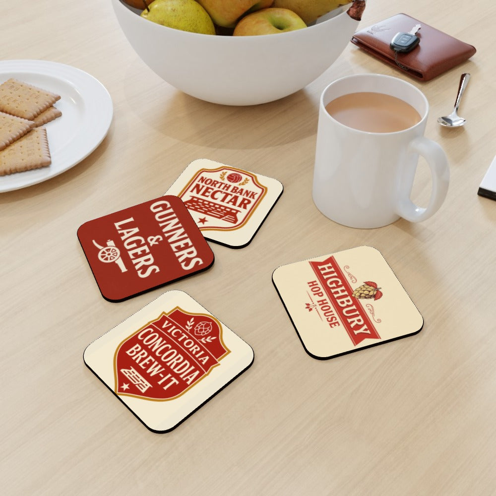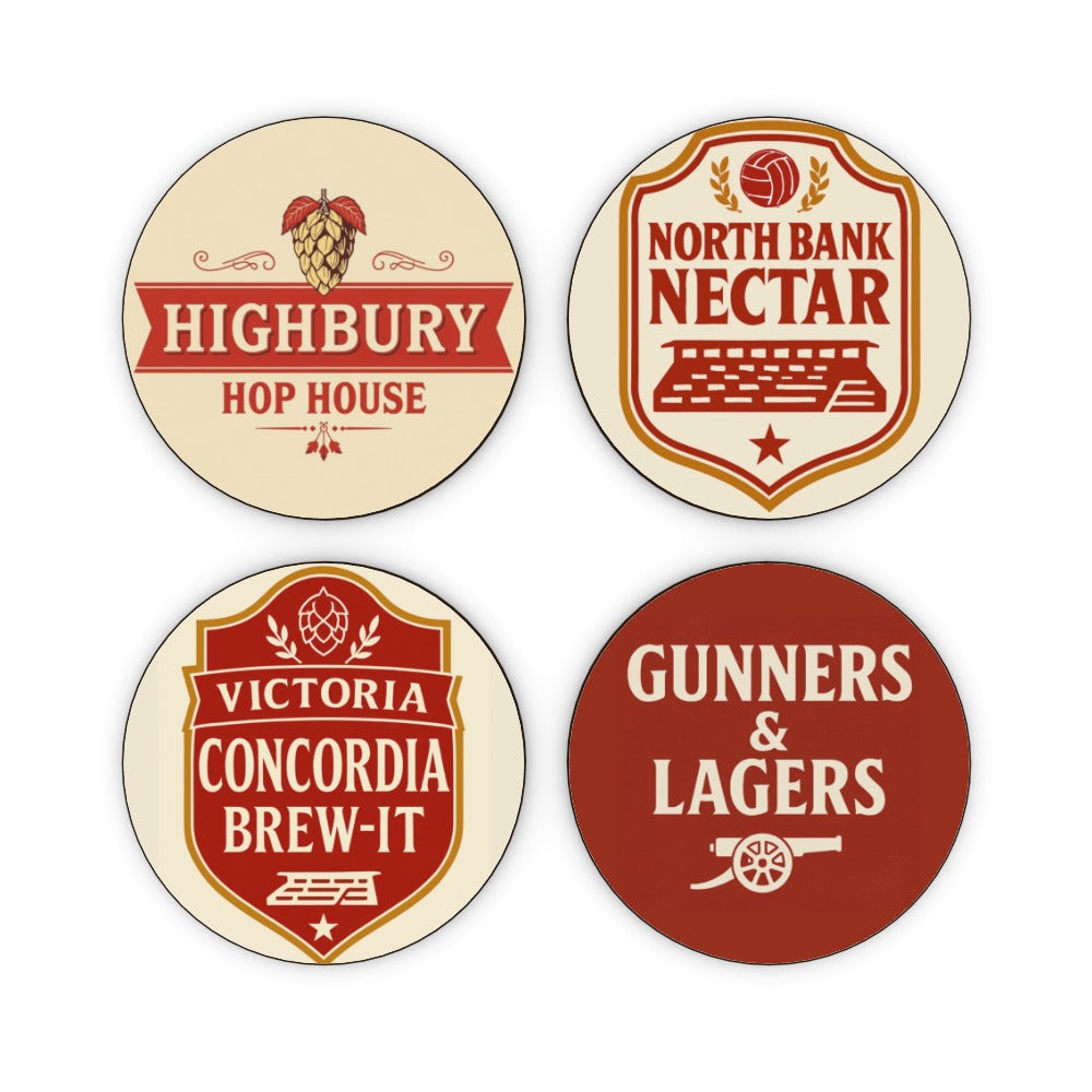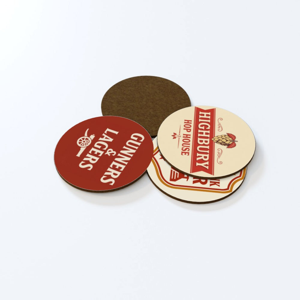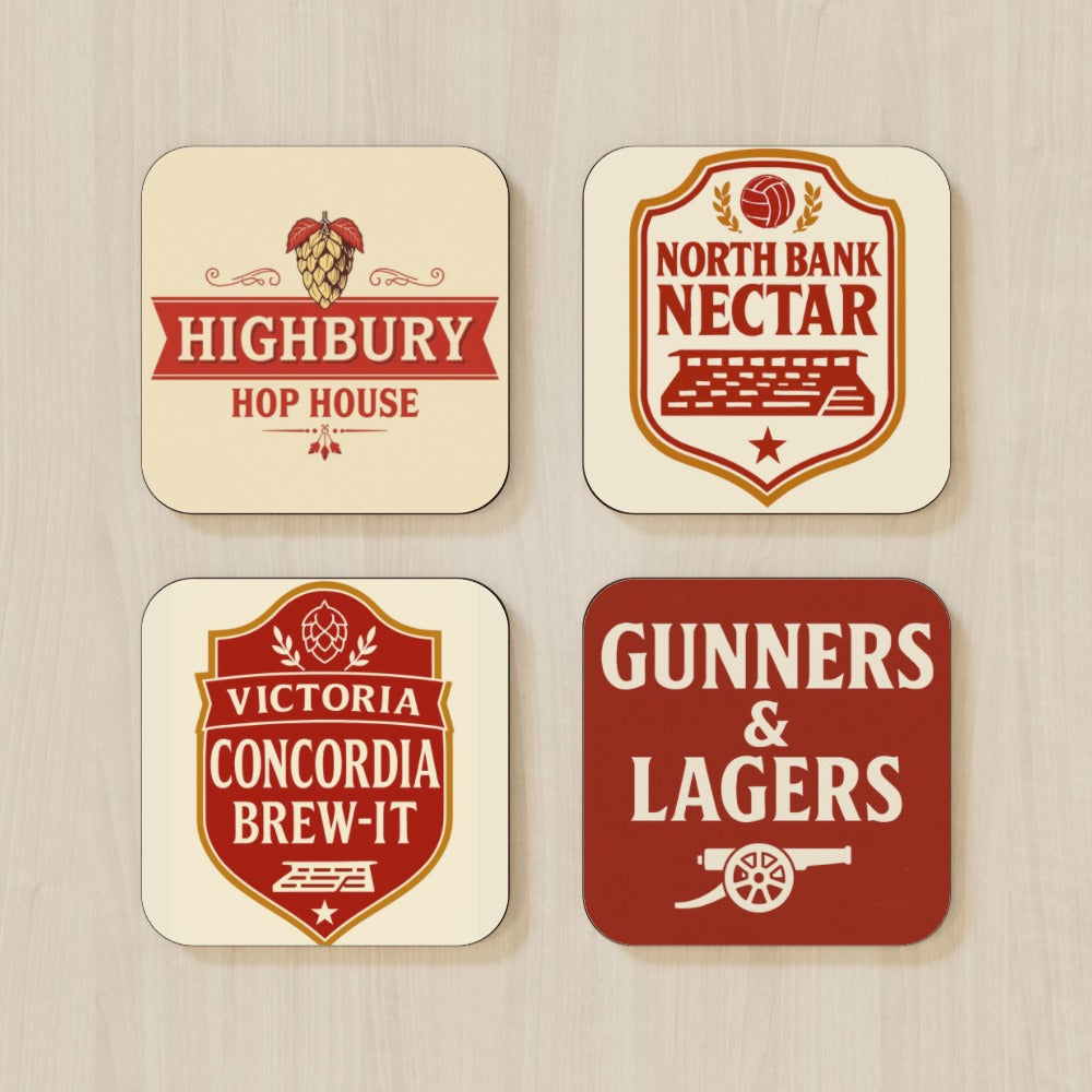 Red & White Football Beer Coaster Set | North London Inspired Pub Style Drink Mat | Football Fan Gift