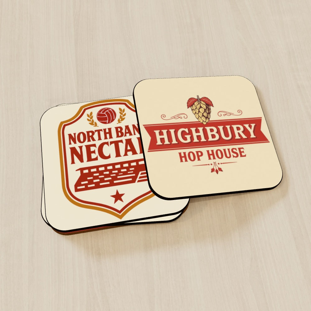 Inspired by the colours, heritage and terrace atmosphere of North London football, this drink mat features a beer-brand-style design that feels right at home in a pub, sports bar or man cave. It’s a subtle nod to the game — perfect for fans who want something stylish rather than loud or overly branded.