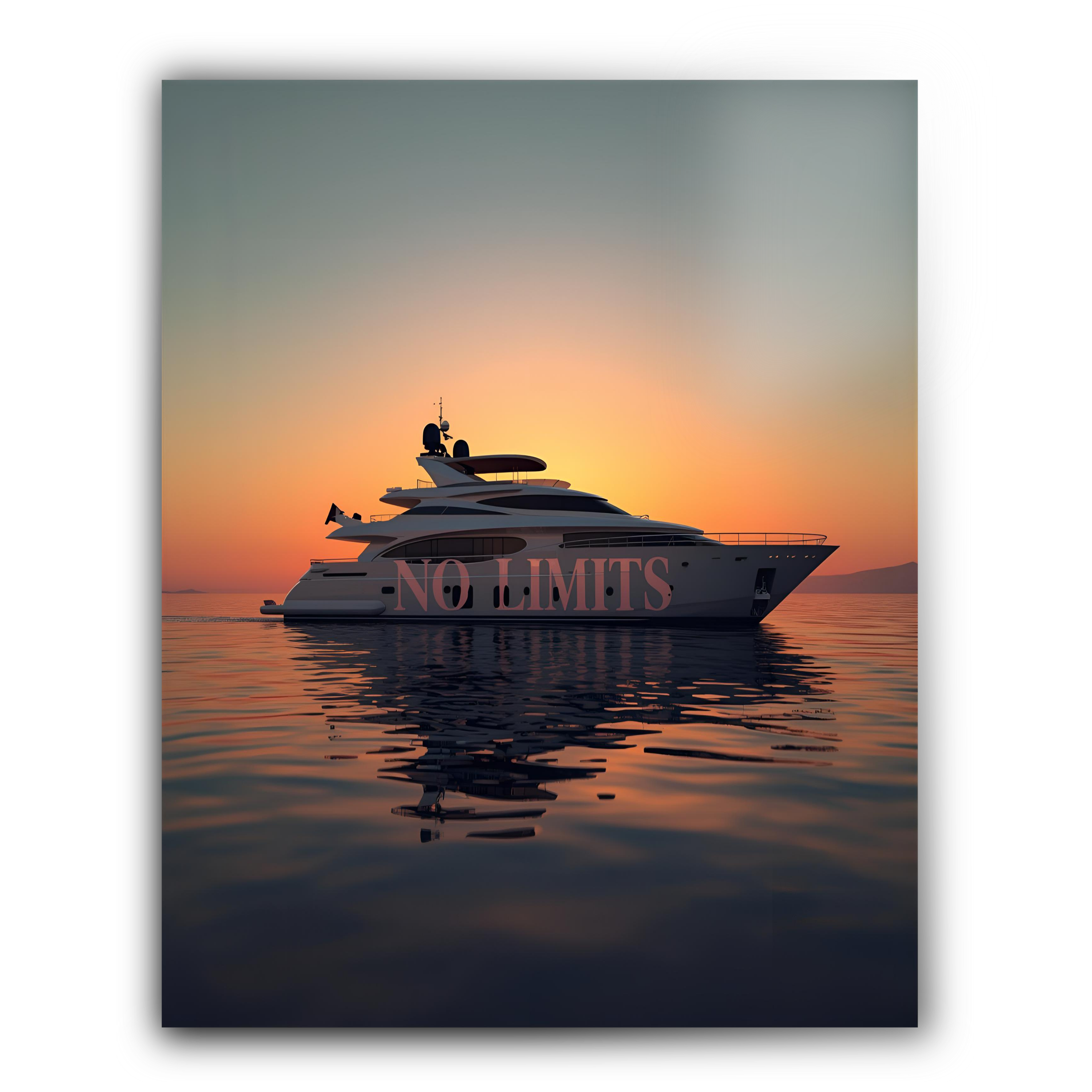 Motivational artwork featuring “No Limits” text on a yacht-inspired design