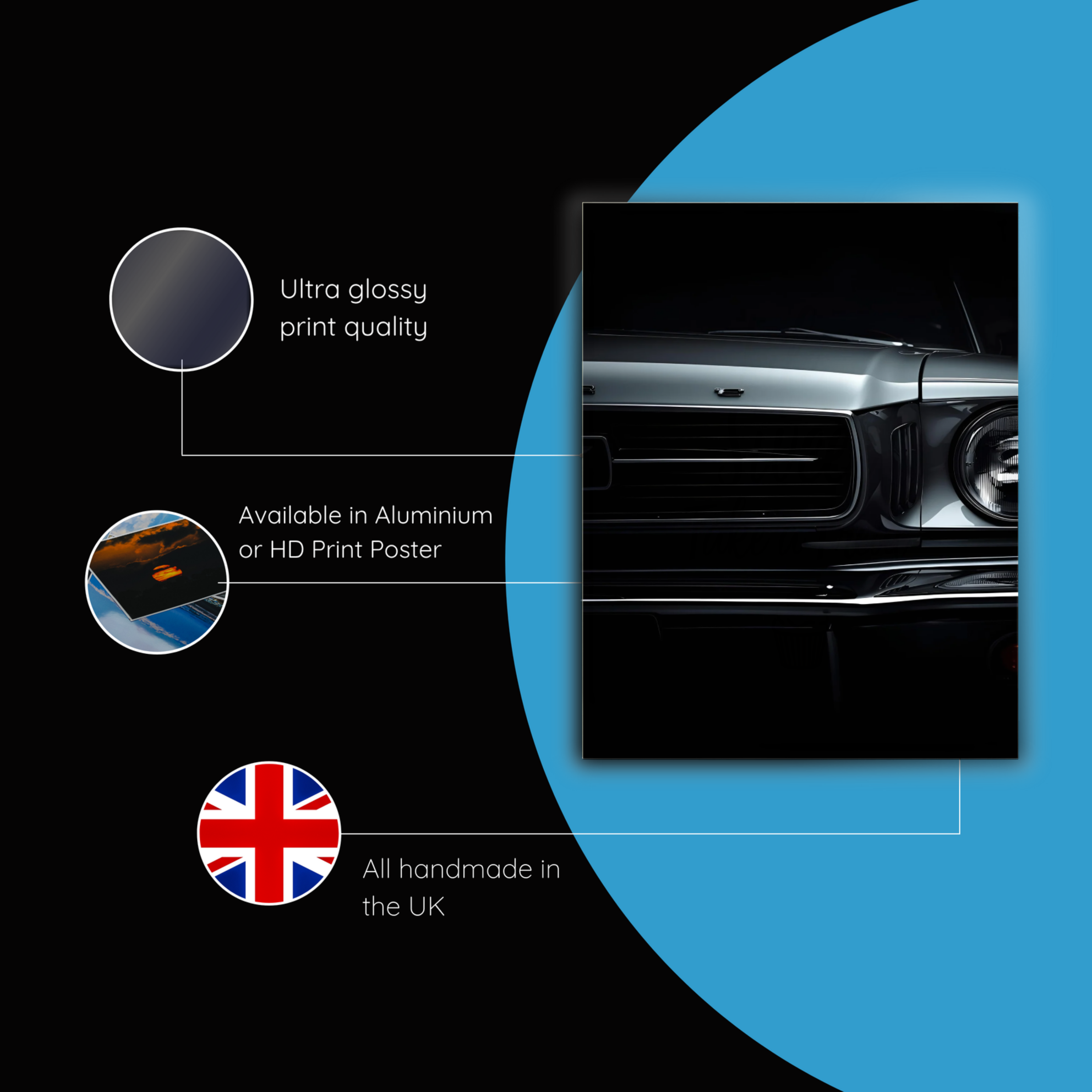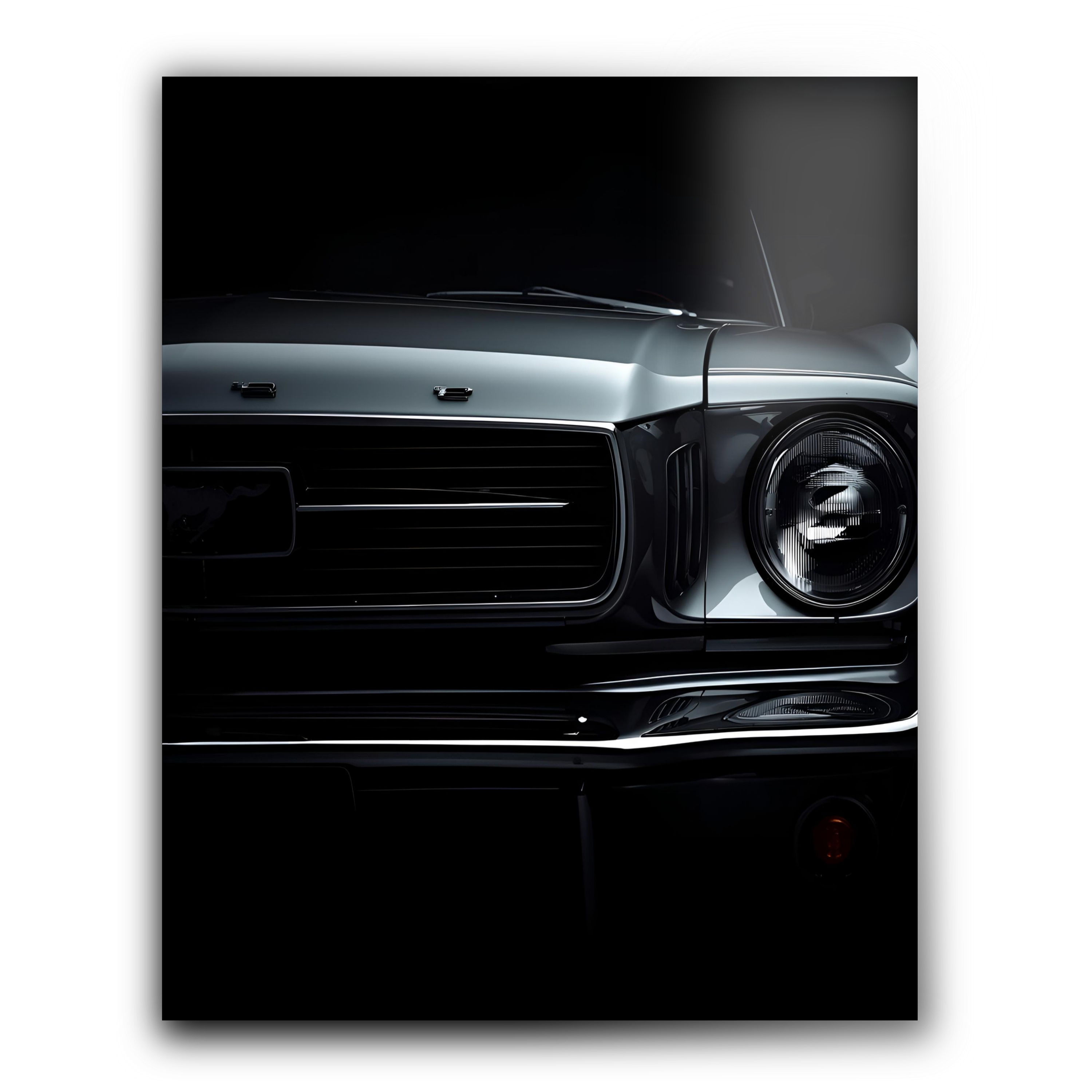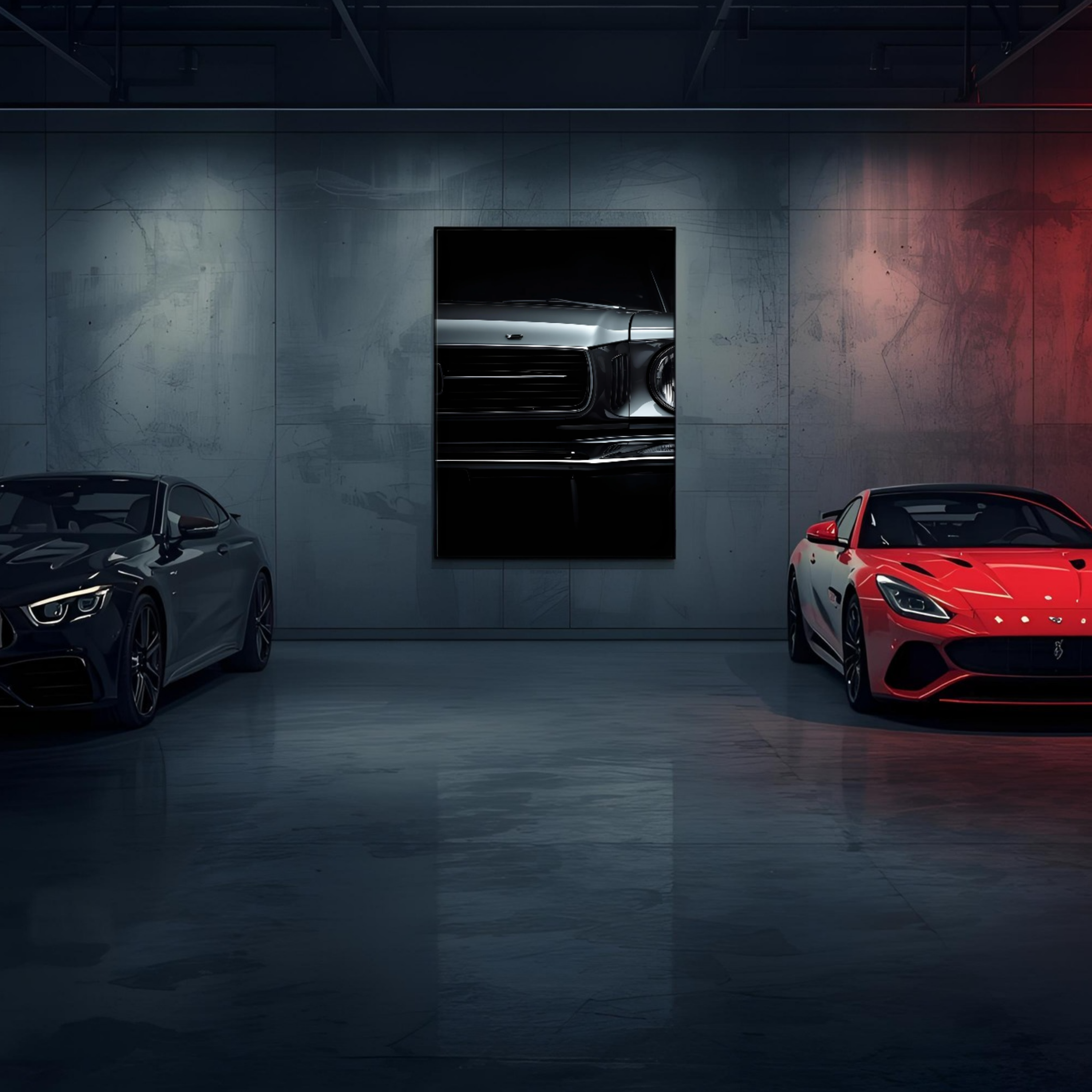 Sleek vintage muscle car wall decor that complements modern or industrial interiors