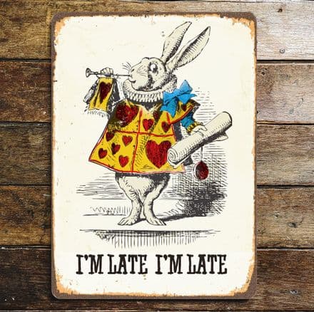 Alice In Wonderland , I'M Late, White Rabbit - Metal Advertising Wall Sign