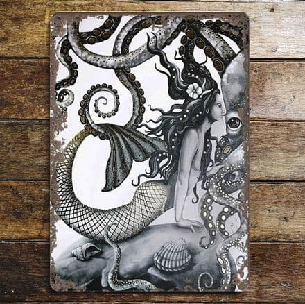 Mermaid Octopus- Metal Sign Plaque - Sea Bathroom