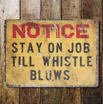 Notice - Stay On Job Till Whistle Blows - Metal Advertising Wall Sign