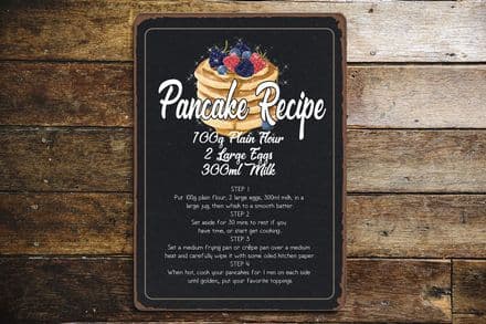 Pancake Recipe - Kitchen Pub Home Bar - Metal Sign Plaque