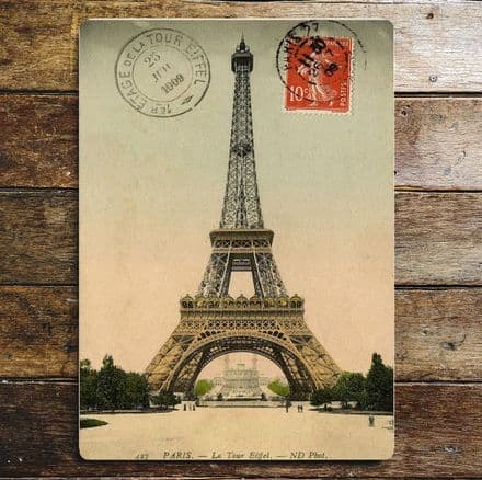 Paris Stamp Vintage Postcard - Metal Travel Wall Sign