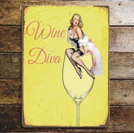 Pin Up Wine Diva - Metal Humour Wall Sign