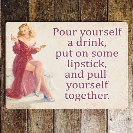 Pour Yourself A Drink, Put On Some Lipstick - Metal Travel Wall Sign