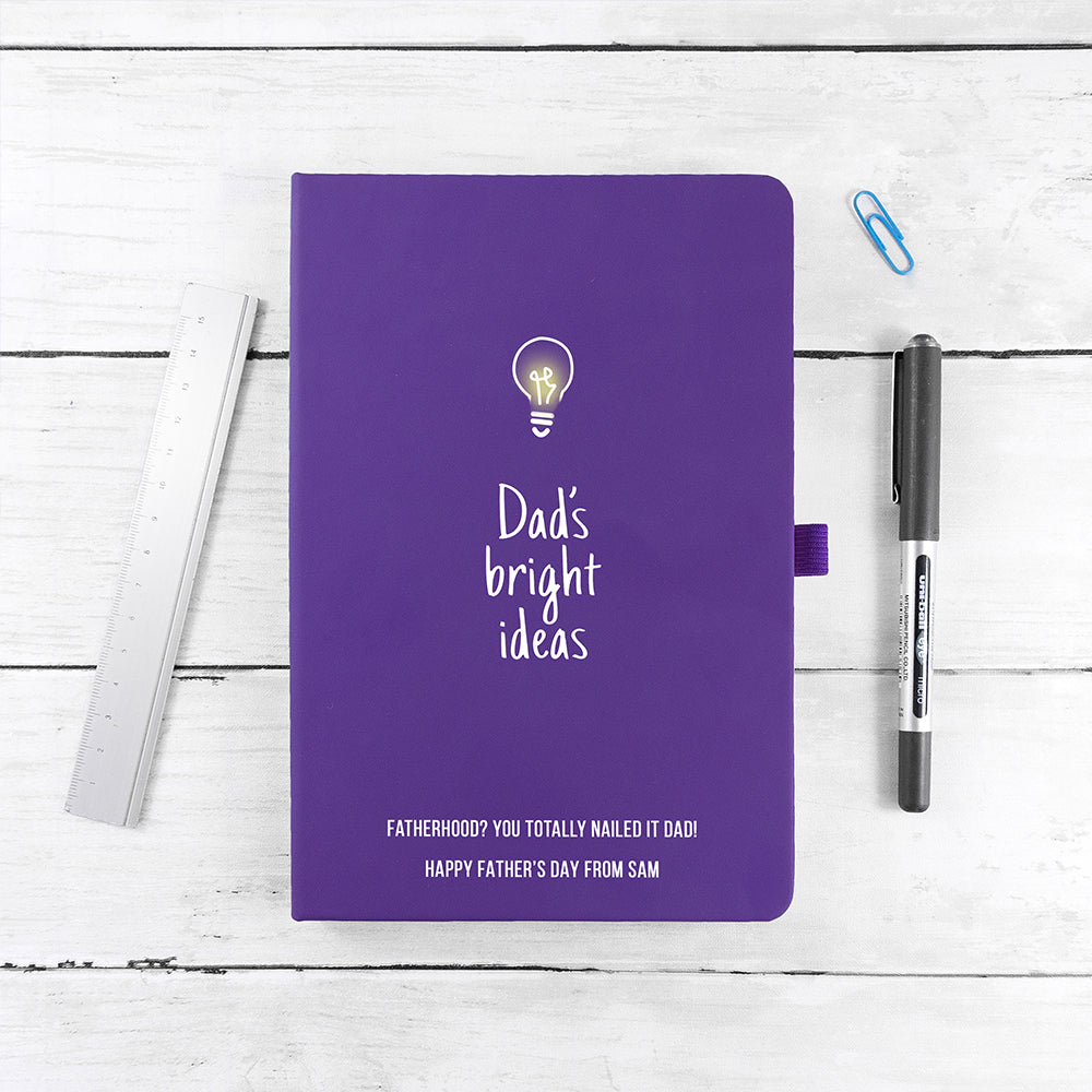 Discover the Personalised Dad's Bright Ideas A5 Notebook, a thoughtful gift or practical accessory. Crafted with quality and designed for everyday use, it adds a personal touch to note-taking. Perfect for organizing thoughts, ideas, and plans with style and convenience.