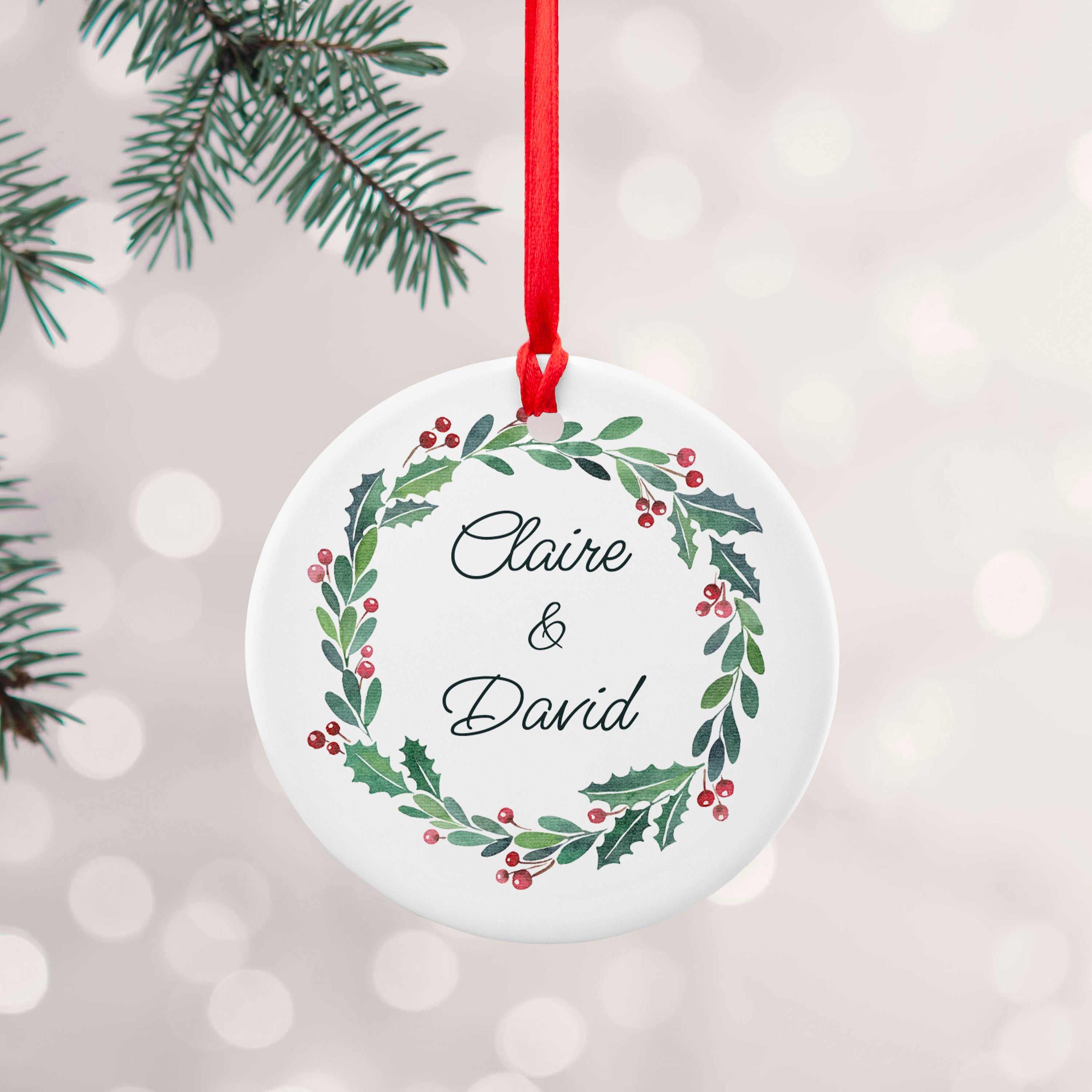 Add a personal touch to your holiday decor with our Personalised Couples Wreath Christmas Decoration. Crafted with care and quality materials, it makes a thoughtful gift or charming accessory. Perfect for celebrating love and the festive season, this wreath brings warmth and meaning to your home.